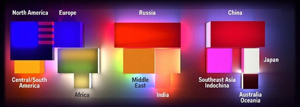 Eine farbliche Bestandsaufnahme des globalen Alltags, repräsentiert durch eine virtuelle tägliche Reise zu symbolträchtige Orte auf unserem Globus.